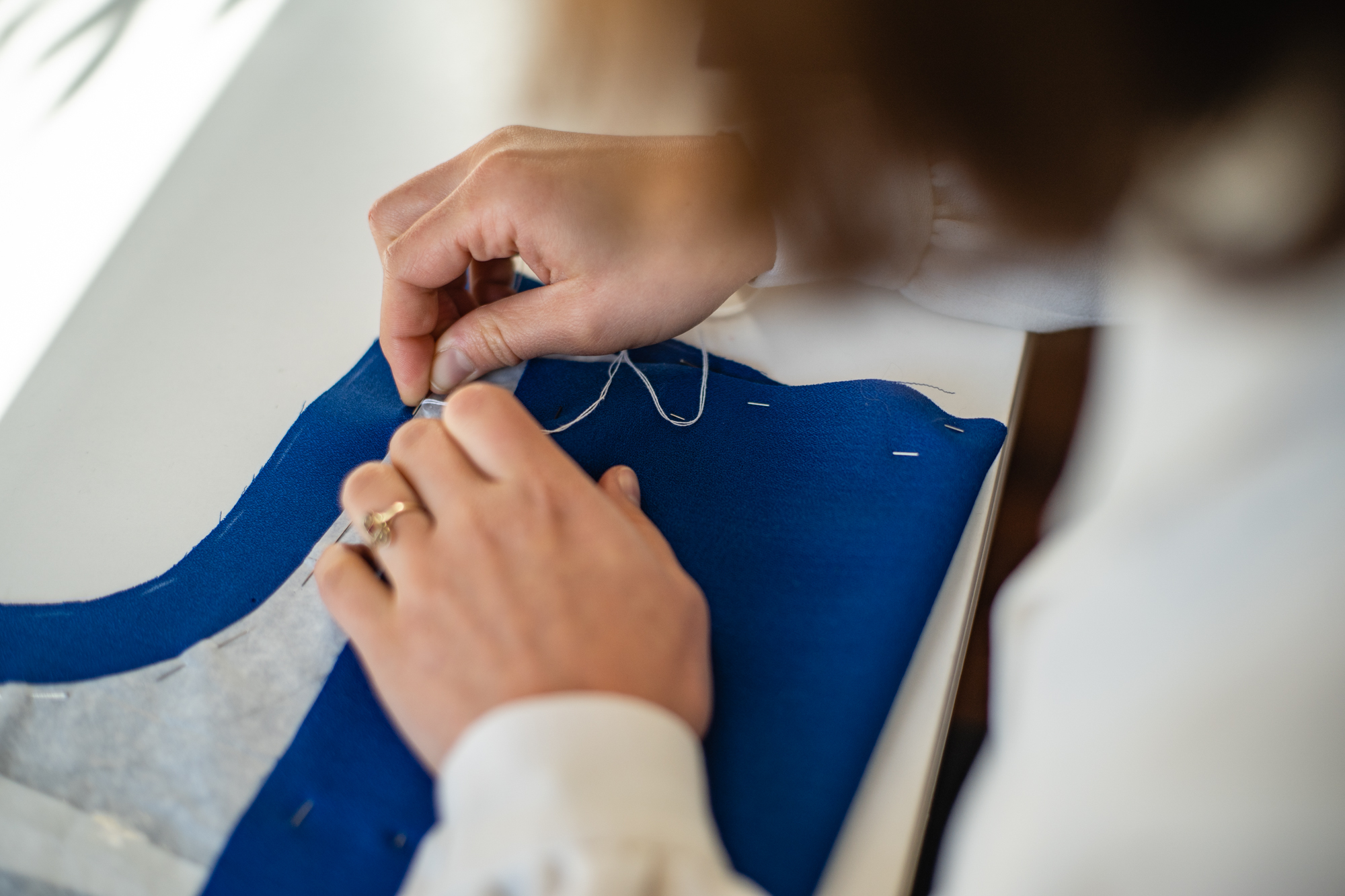 La petite maison de grande couture permet de qualifier ce travail d’artisan-couturière guidé par la recherche de l’excellence où le savoir-faire s’exprime à travers chaque étape du vêtement.